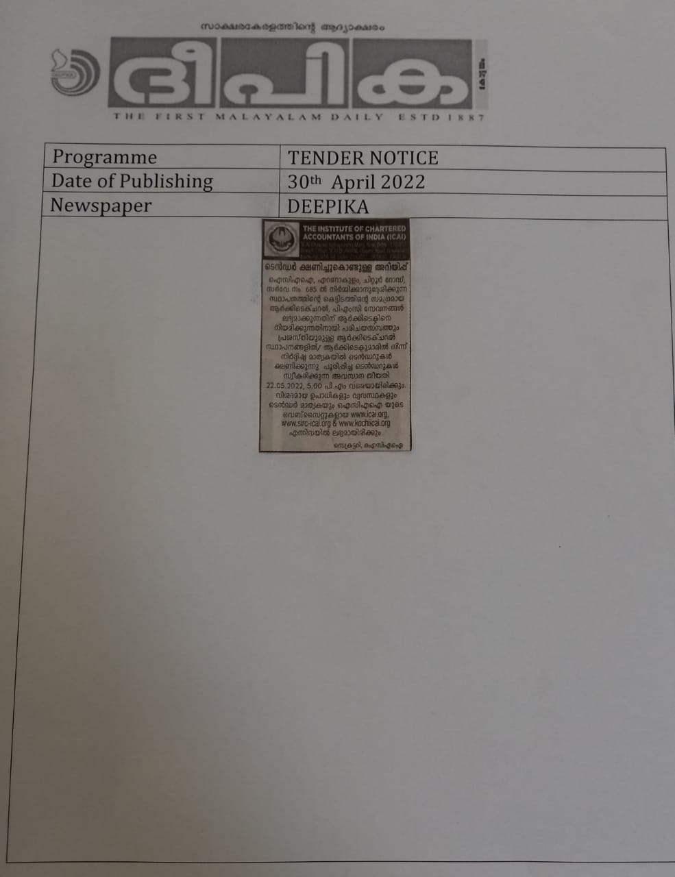 Tender for appointment of architect- Deepika - Daily Newspaper Members 698 Views View Announcement Download File Share this Post