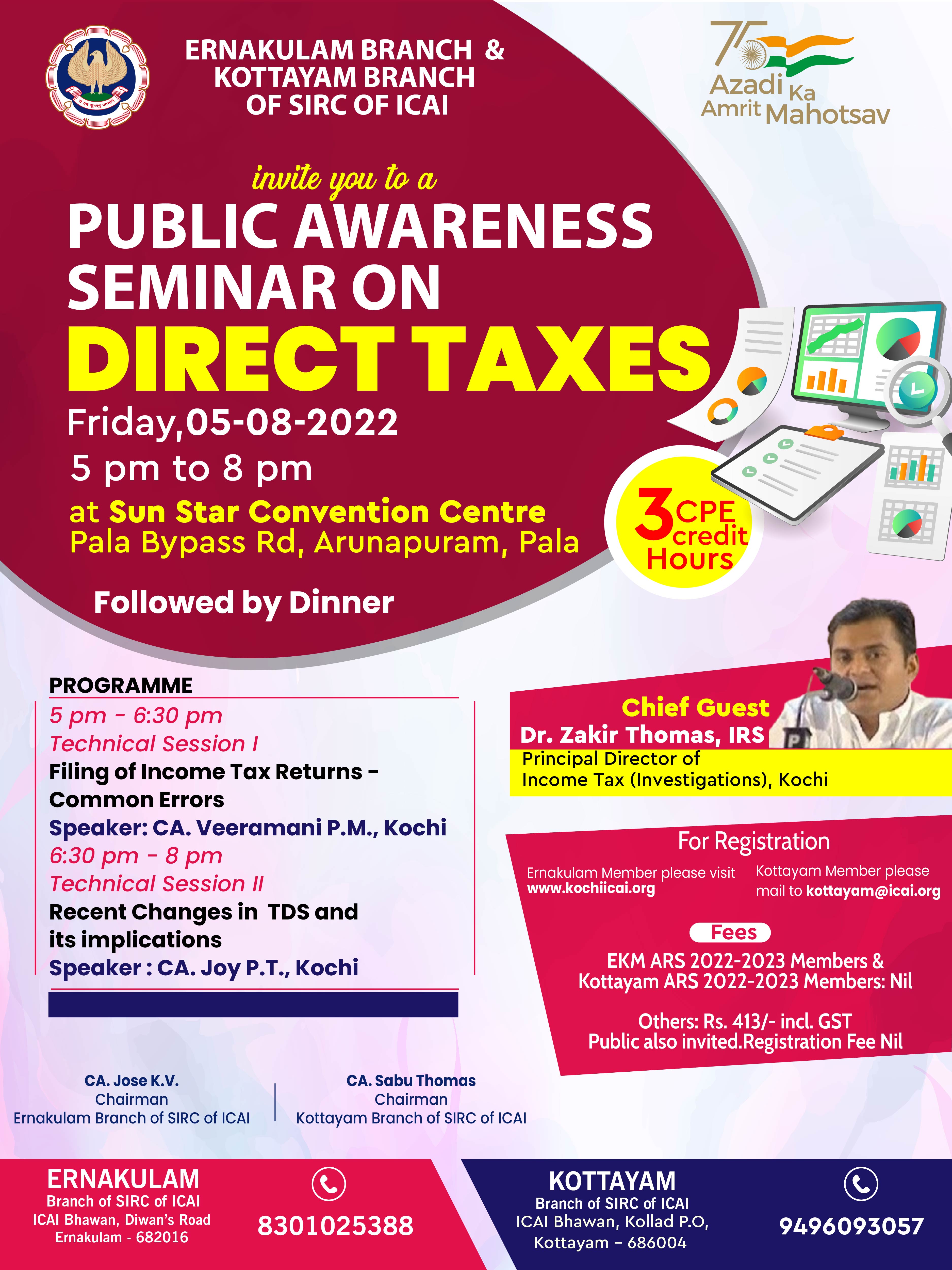 on 06 -07 -2022 CPE Credit: 2 Hours Venue: ICAI Bhawan, Diwan's Road,Ernakulam,Kerala
