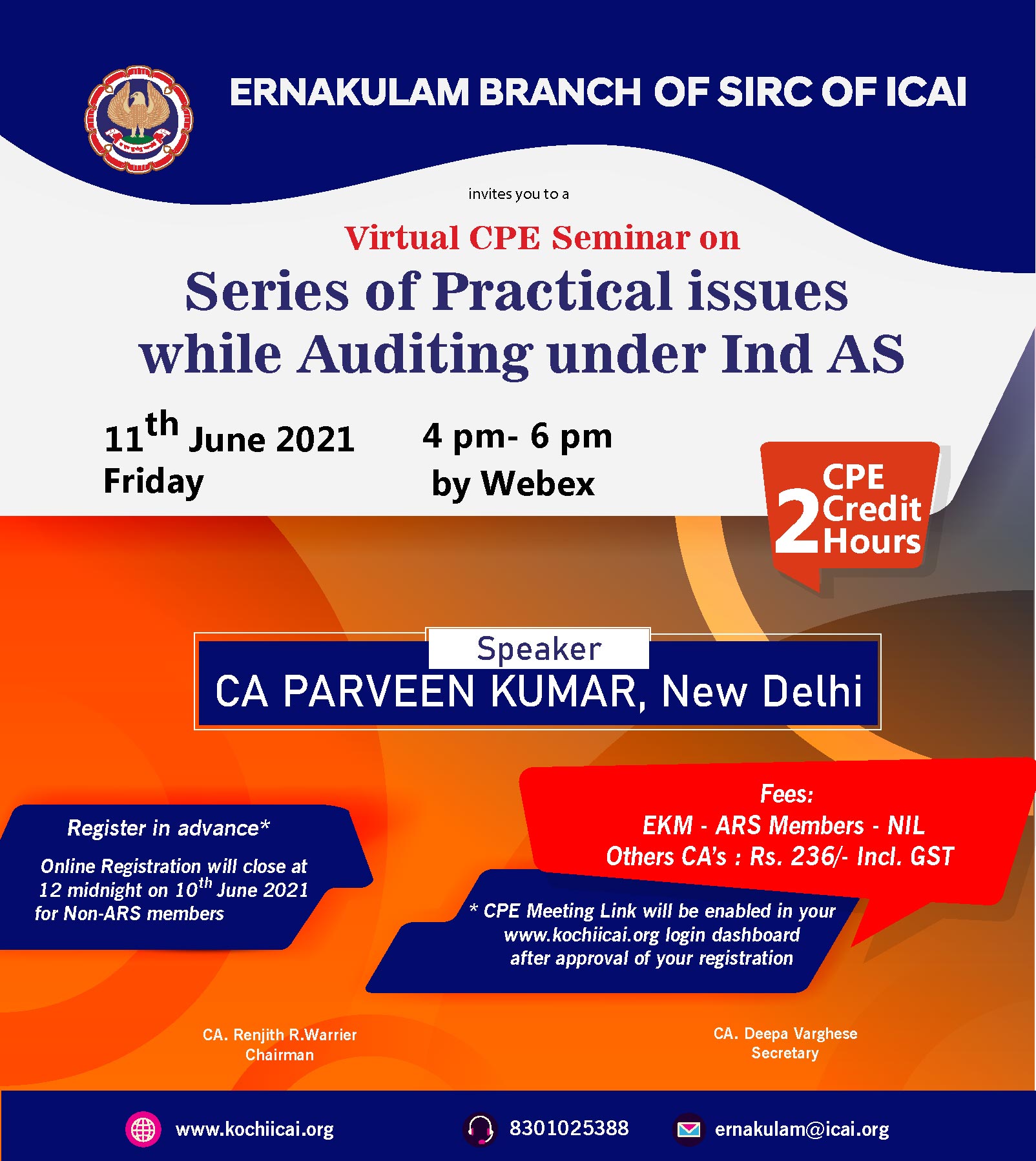 on 08 -06 -2021 CPE Credit: 3 Hours Venue: Virtual Meeting Space,