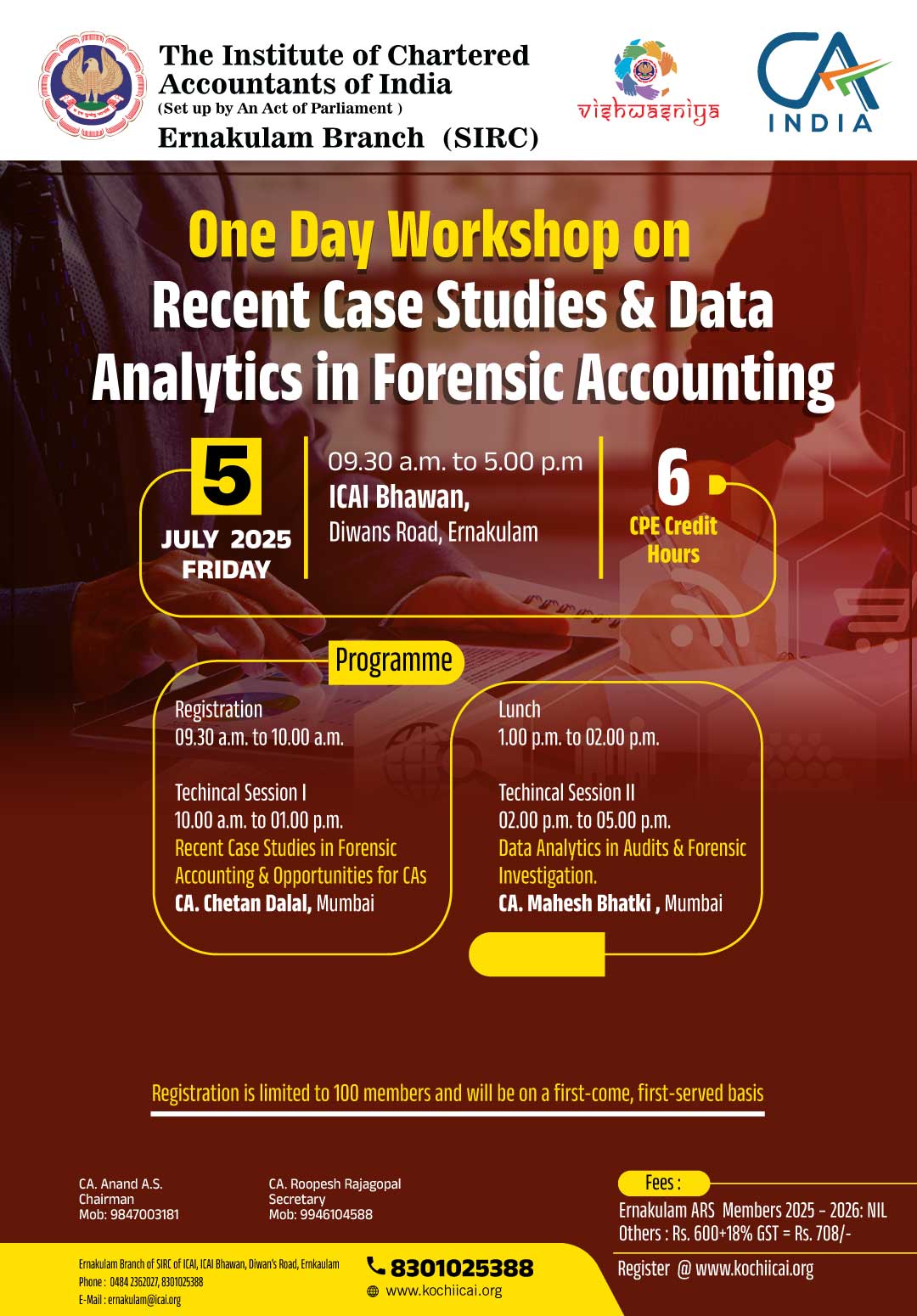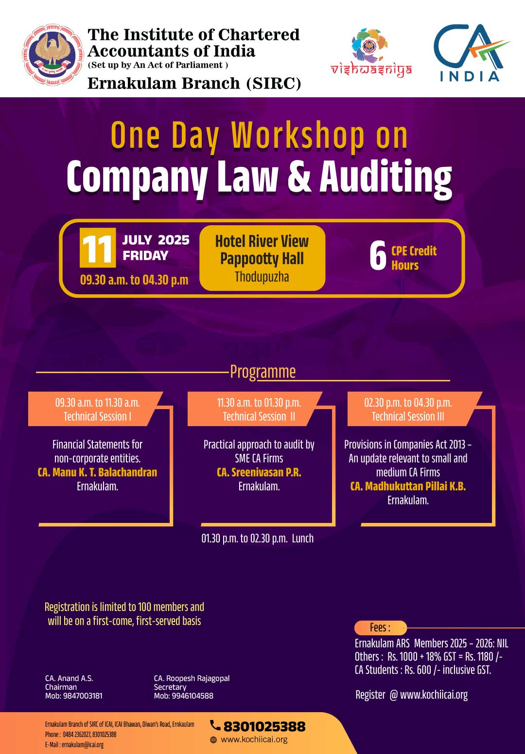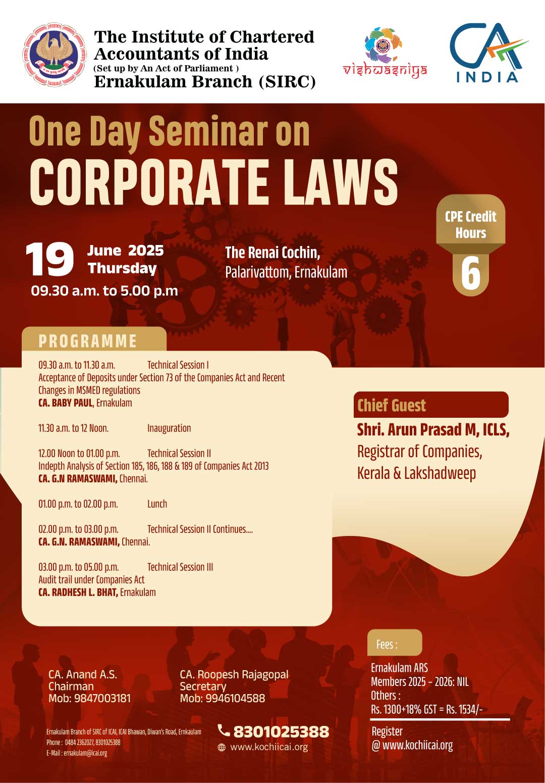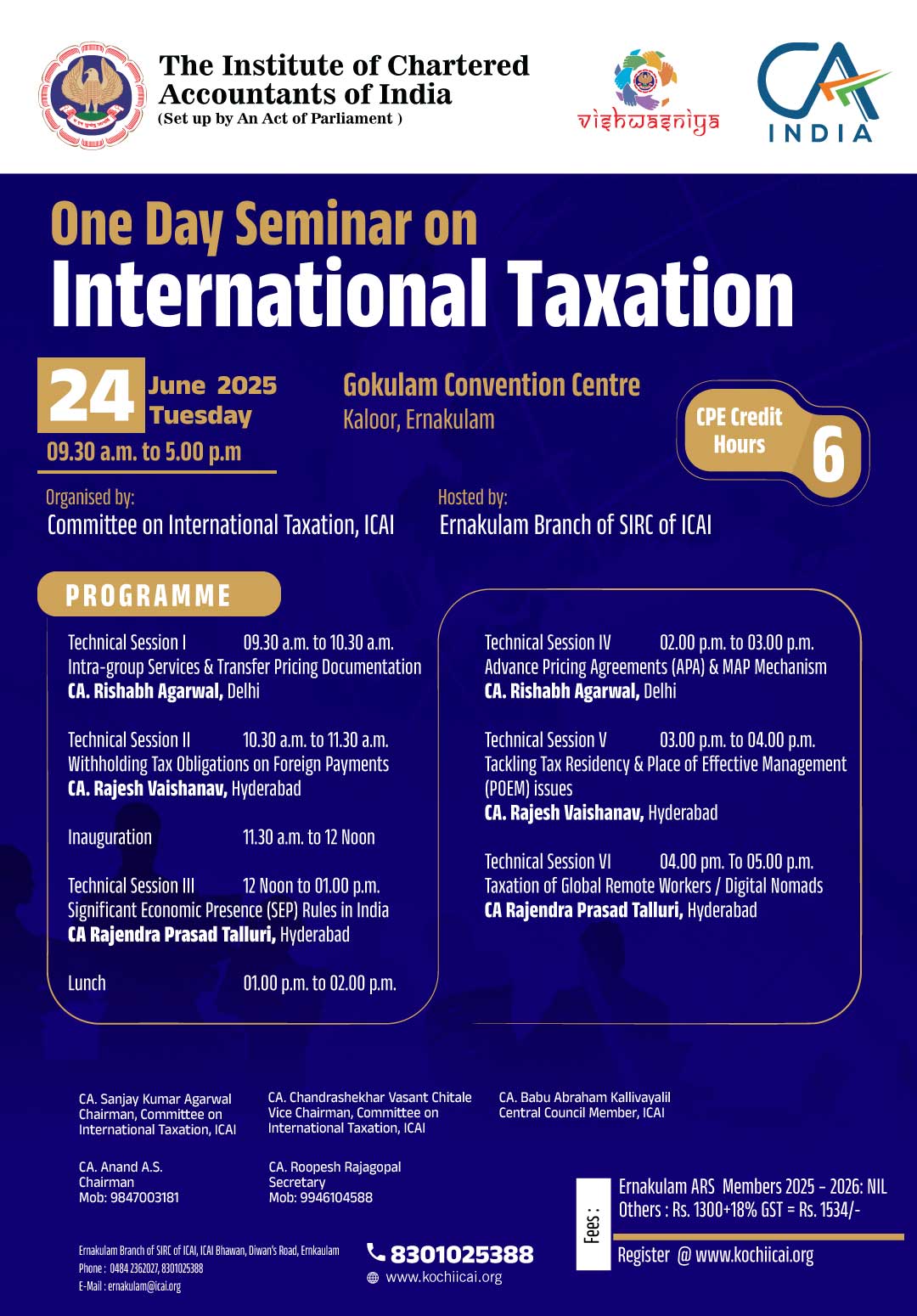 on 19 -06 -2025 CPE Credit: 6 Hours Venue: Renai Cochin, Hotel Renai Cochin,S.N.Juction, Palarivattom, Ernakulam