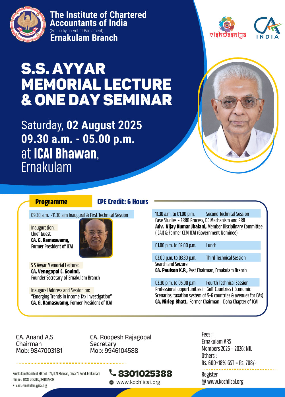 on 02 -08 -2025 CPE Credit: 6 Hours Venue: ICAI Bhawan, Diwan's Road,Ernakulam,Kerala
