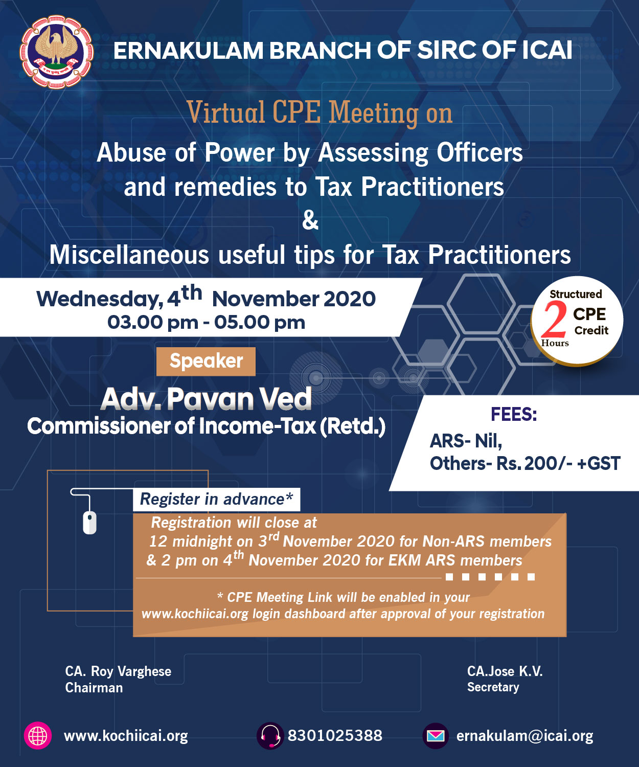on 23 -10 -2020 CPE Credit: 2 Hours Venue: Virtual Meeting Space,