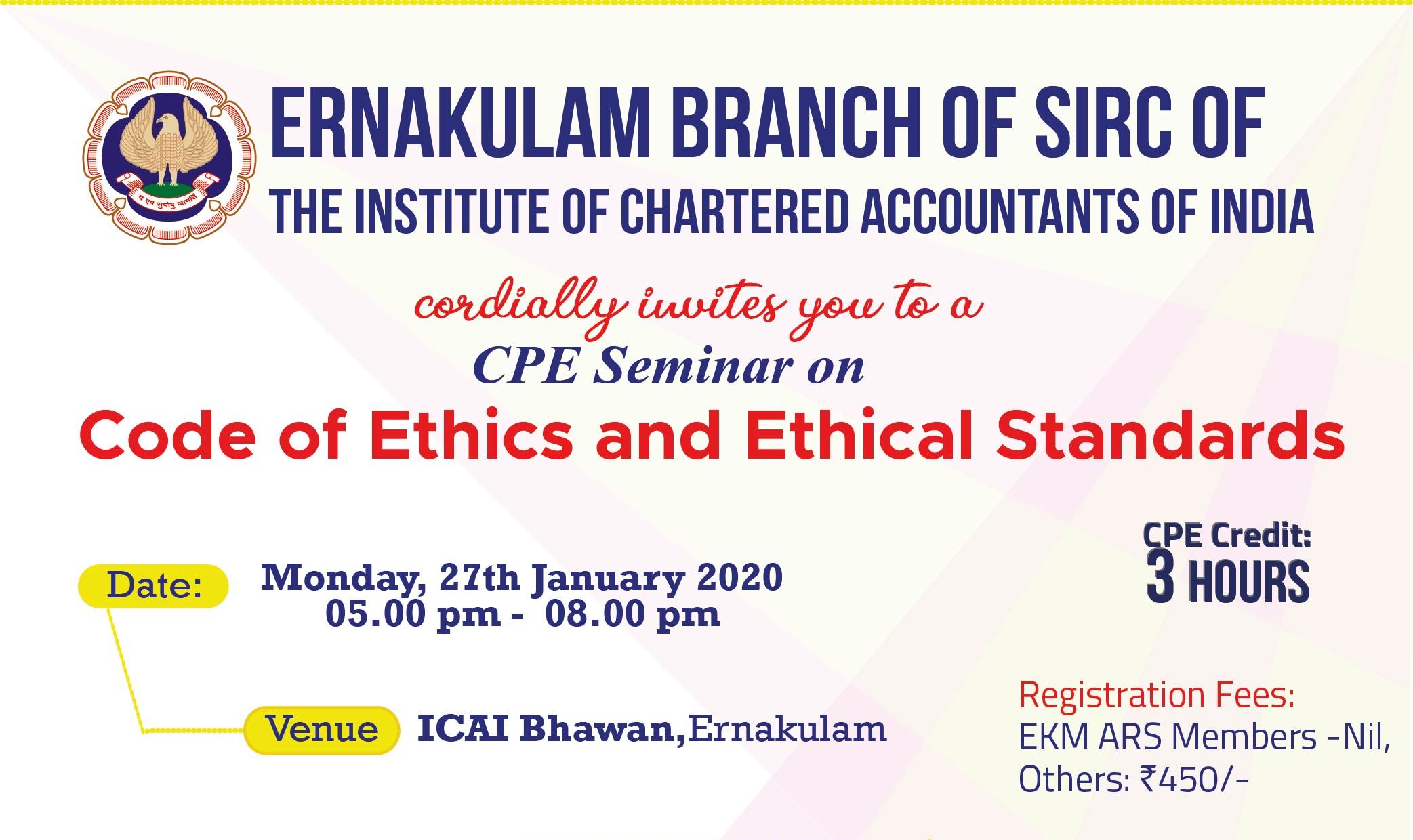 on 10 -01 -2020 CPE Credit: 0 Hours Venue: ICAI Bhawan, Diwan's Road,Ernakulam,Kerala