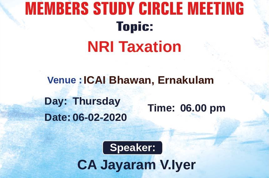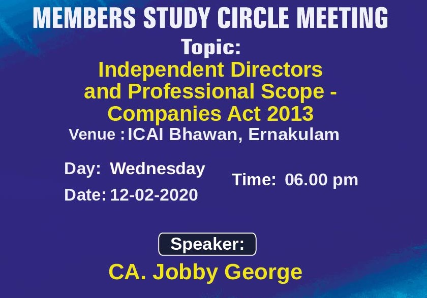 on 12 -02 -2020 CPE Credit: 0 Hours Venue: ICAI Bhawan, Diwan's Road,Ernakulam,Kerala