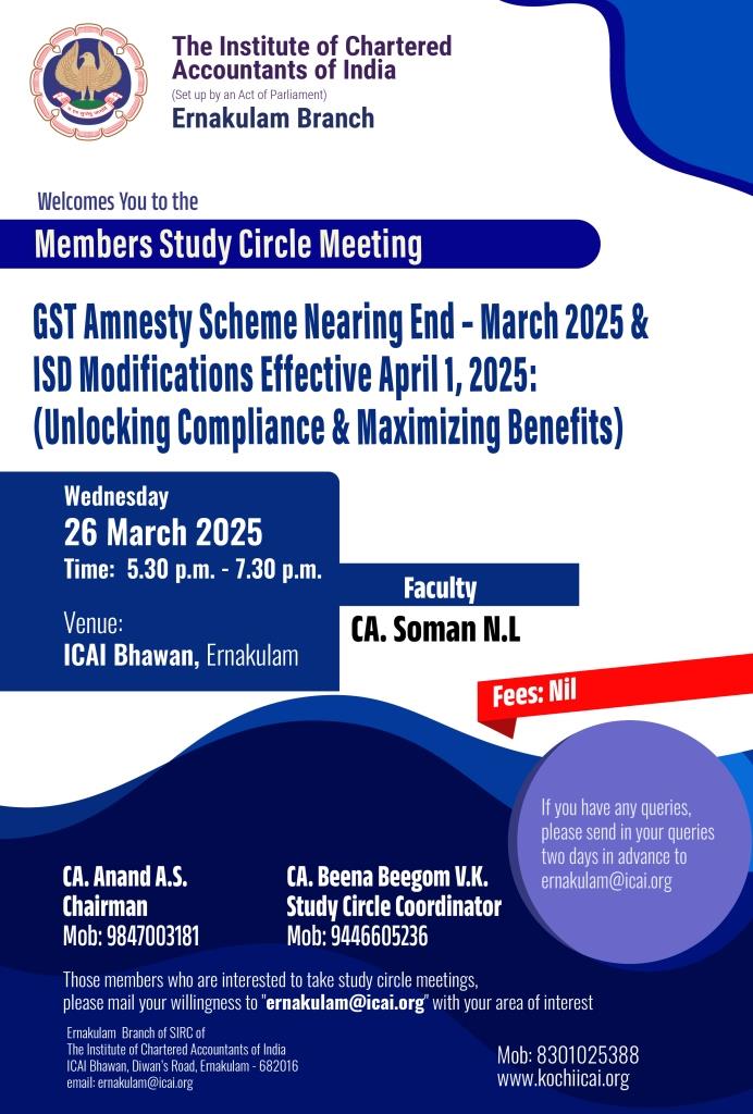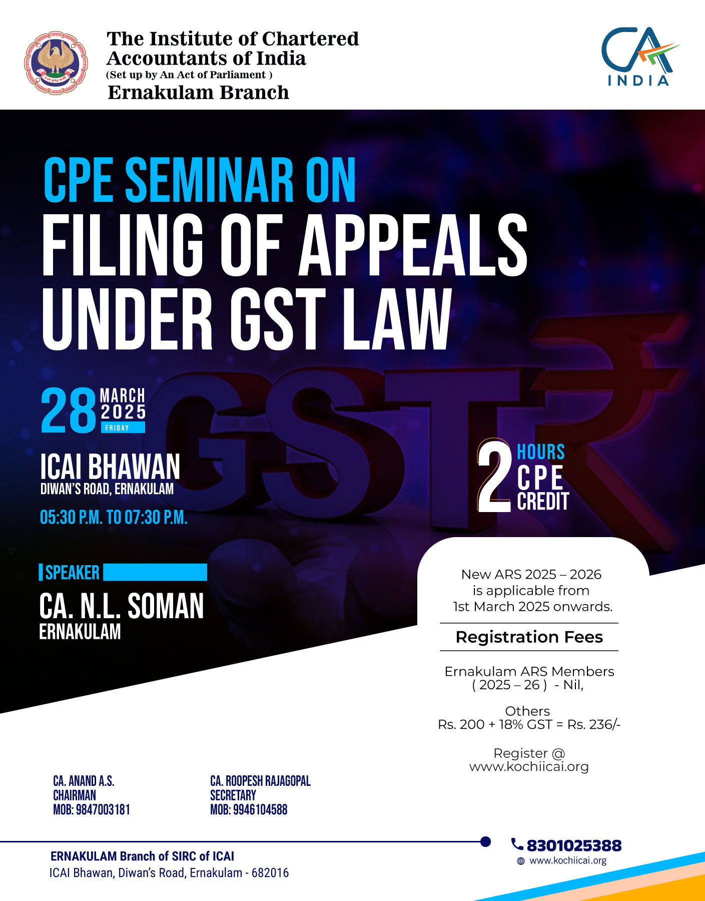 on 26 -03 -2025 CPE Credit: 0 Hours Venue: ICAI Bhawan, Diwan's Road,Ernakulam,Kerala