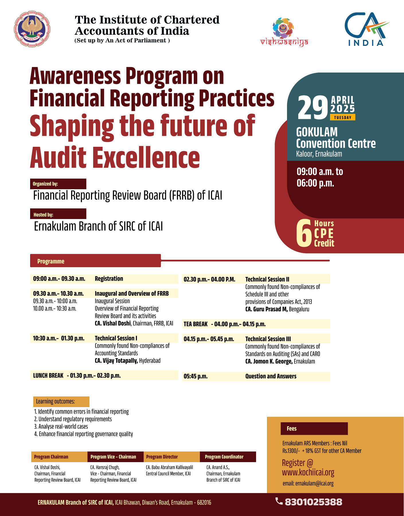 on 25 -04 -2025 CPE Credit: 6 Hours Venue: ICAI Bhawan, Diwan's Road,Ernakulam,Kerala