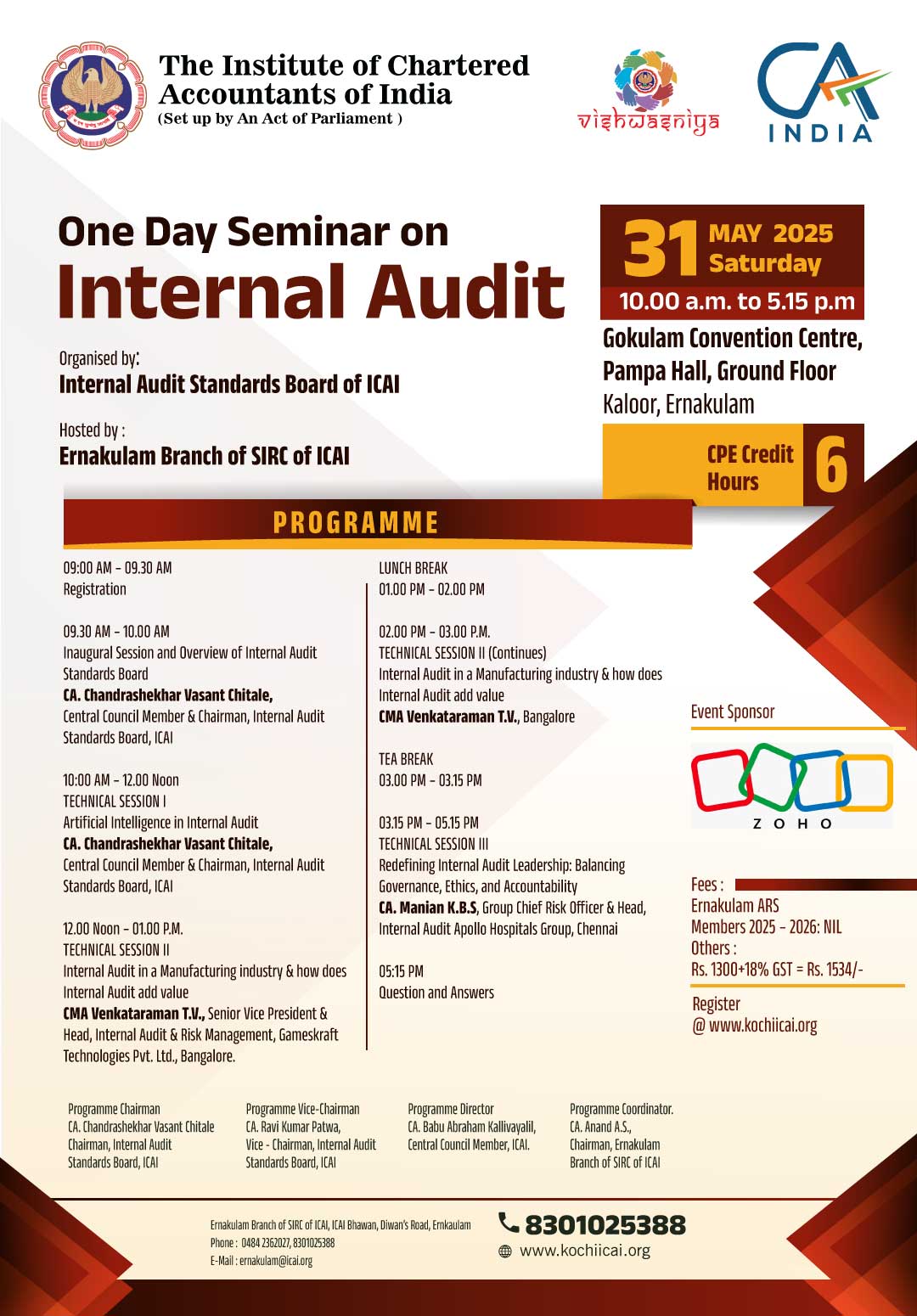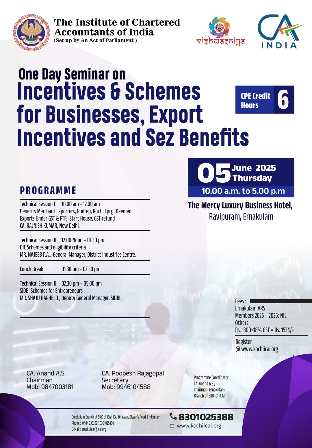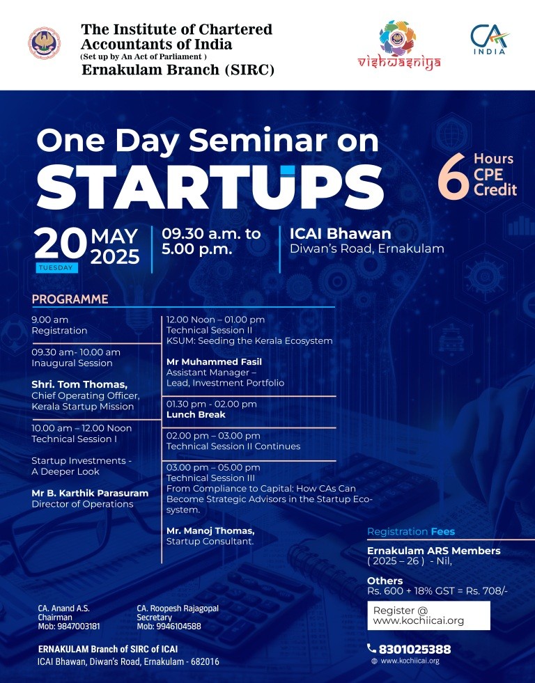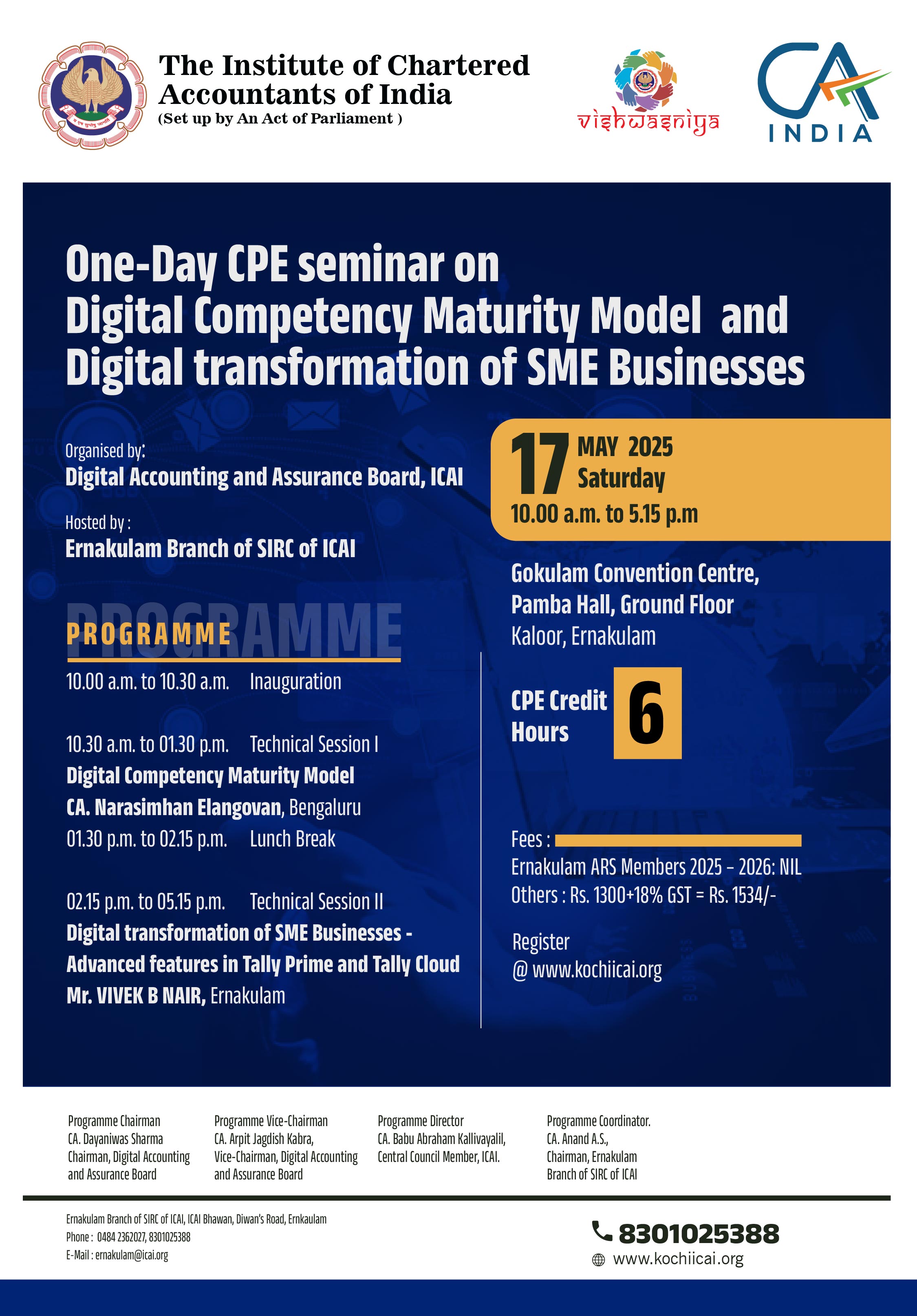 on 20 -05 -2025 CPE Credit: 6 Hours Venue: ICAI Bhawan, Diwan's Road,Ernakulam,Kerala