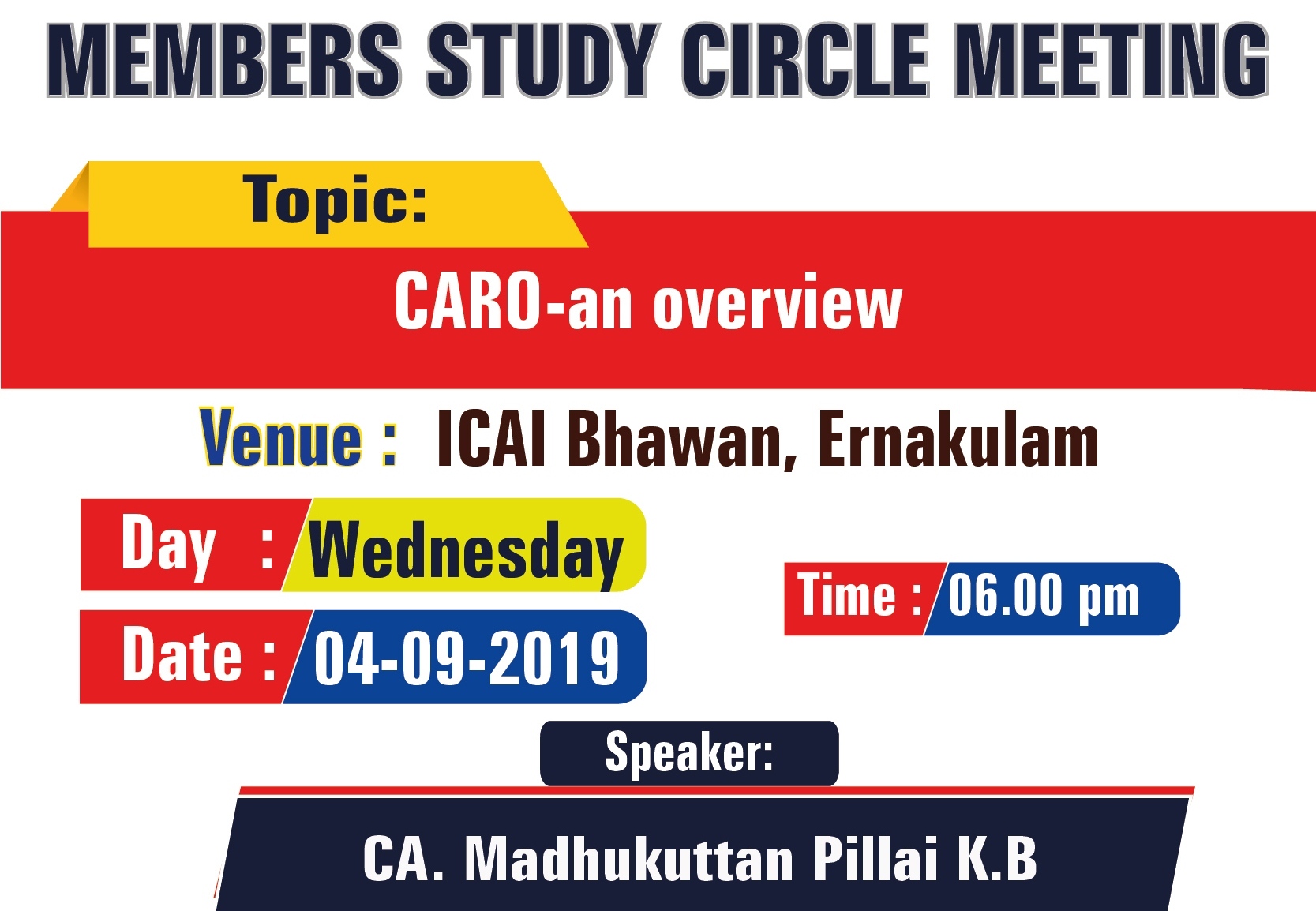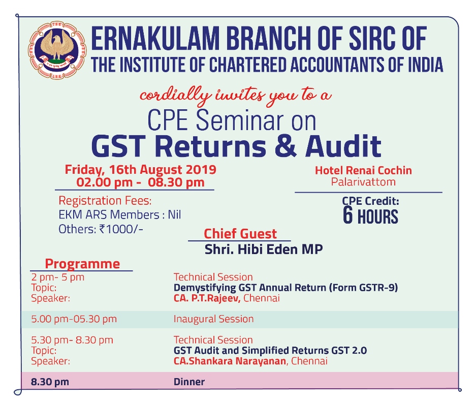 on 04 -09 -2019 CPE Credit: 0 Hours Venue: ICAI Bhawan, Diwan's Road,Ernakulam,Kerala