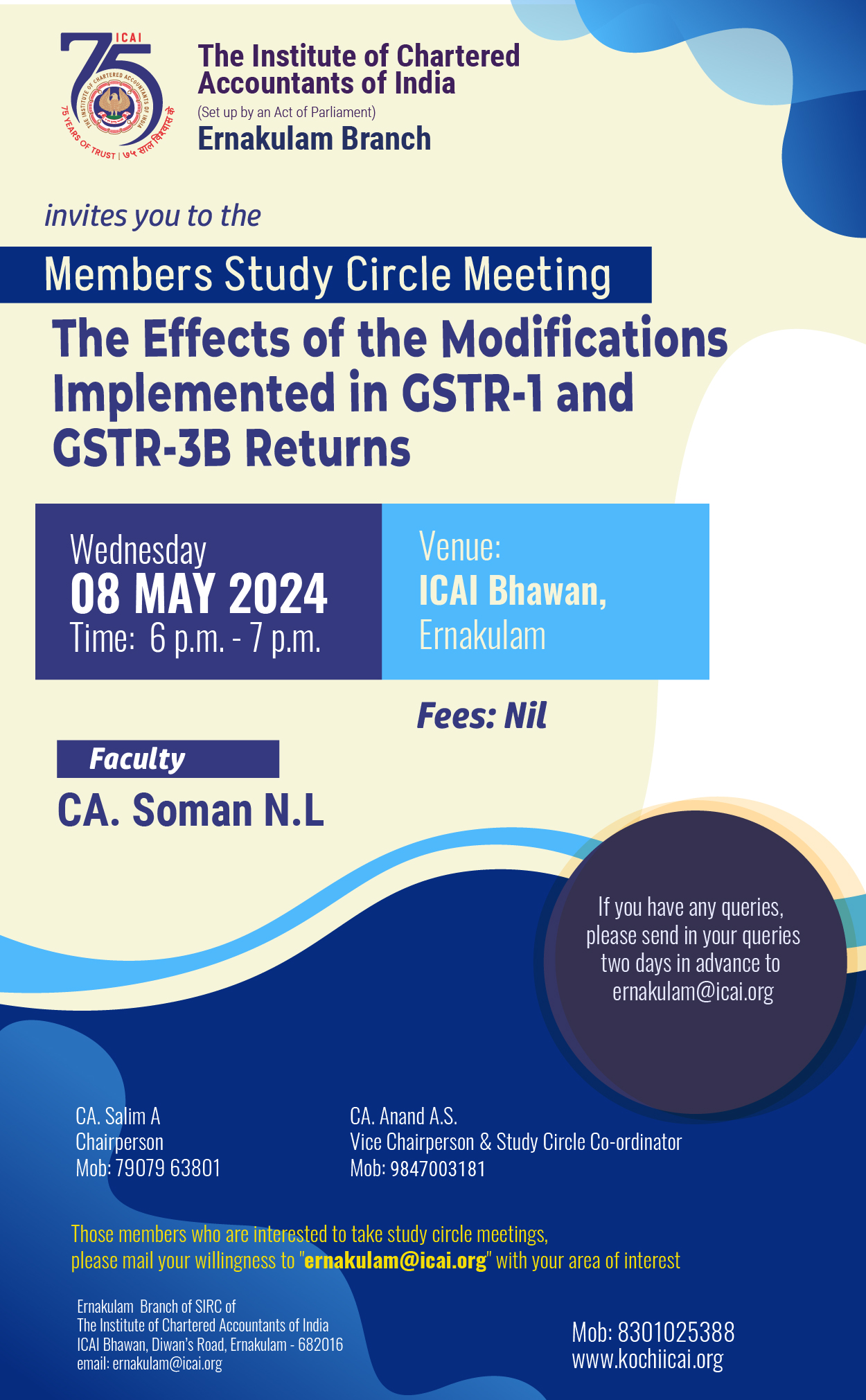 on 08 -05 -2024 CPE Credit: 0 Hours Venue: ICAI Bhawan, Diwan's Road,Ernakulam,Kerala