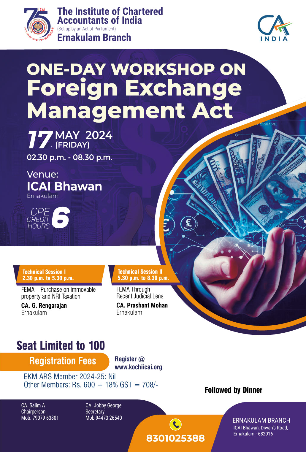 on 17 -05 -2024 CPE Credit: 6 Hours Venue: ICAI Bhawan, Diwan's Road,Ernakulam,Kerala