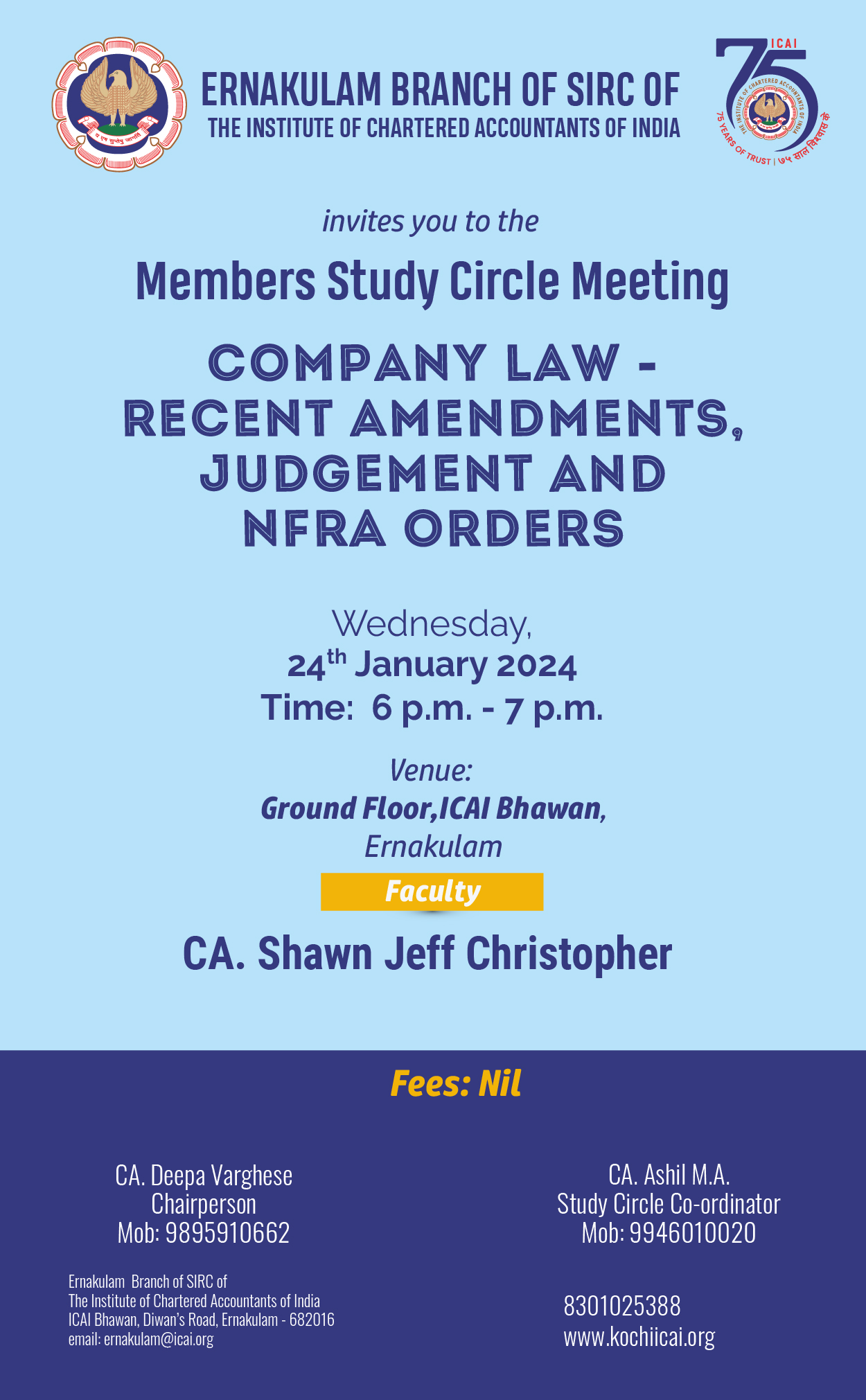 on 24 -01 -2024 CPE Credit: 0 Hours Venue: ICAI Bhawan, Diwan's Road,Ernakulam,Kerala