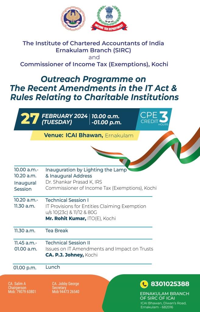 on 27 -02 -2024 CPE Credit: 3 Hours Venue: ICAI Bhawan, Diwan's Road,Ernakulam,Kerala