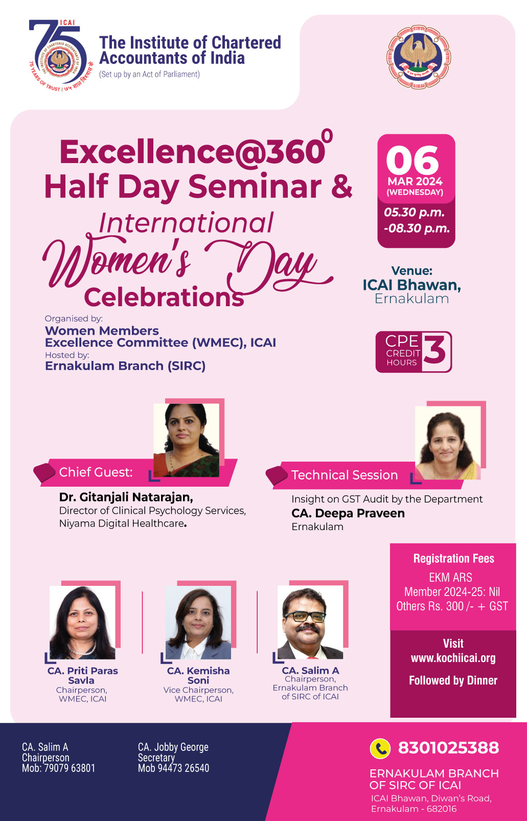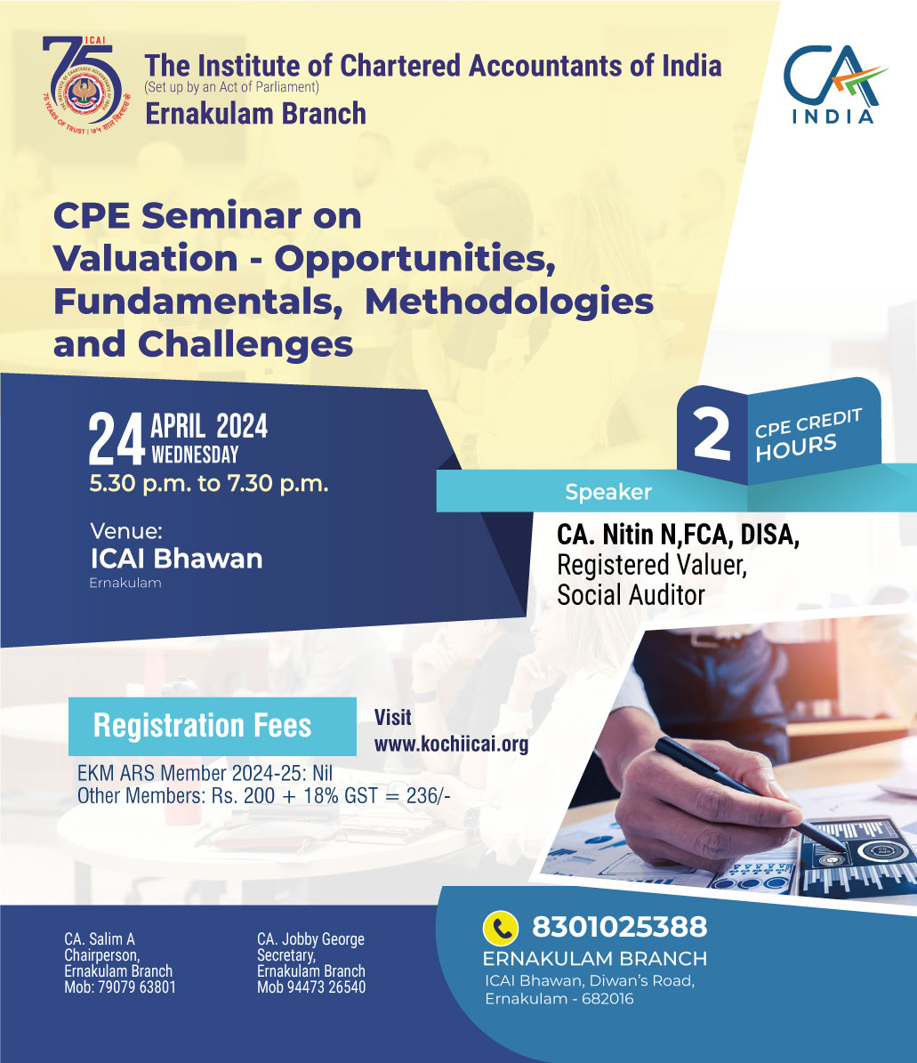 on 06 -03 -2024 CPE Credit: 3 Hours Venue: ICAI Bhawan, Diwan's Road,Ernakulam,Kerala