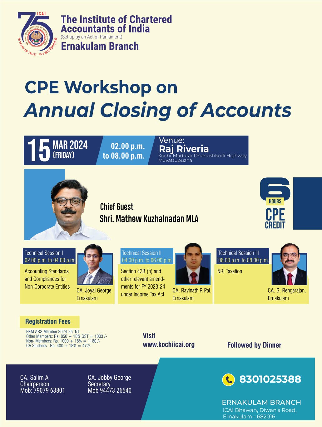 on 15 -03 -2024 CPE Credit: 6 Hours Venue: Raj Riveria, Kochi-Madurai-Dhanushkodi Highway, Muvattupuzha