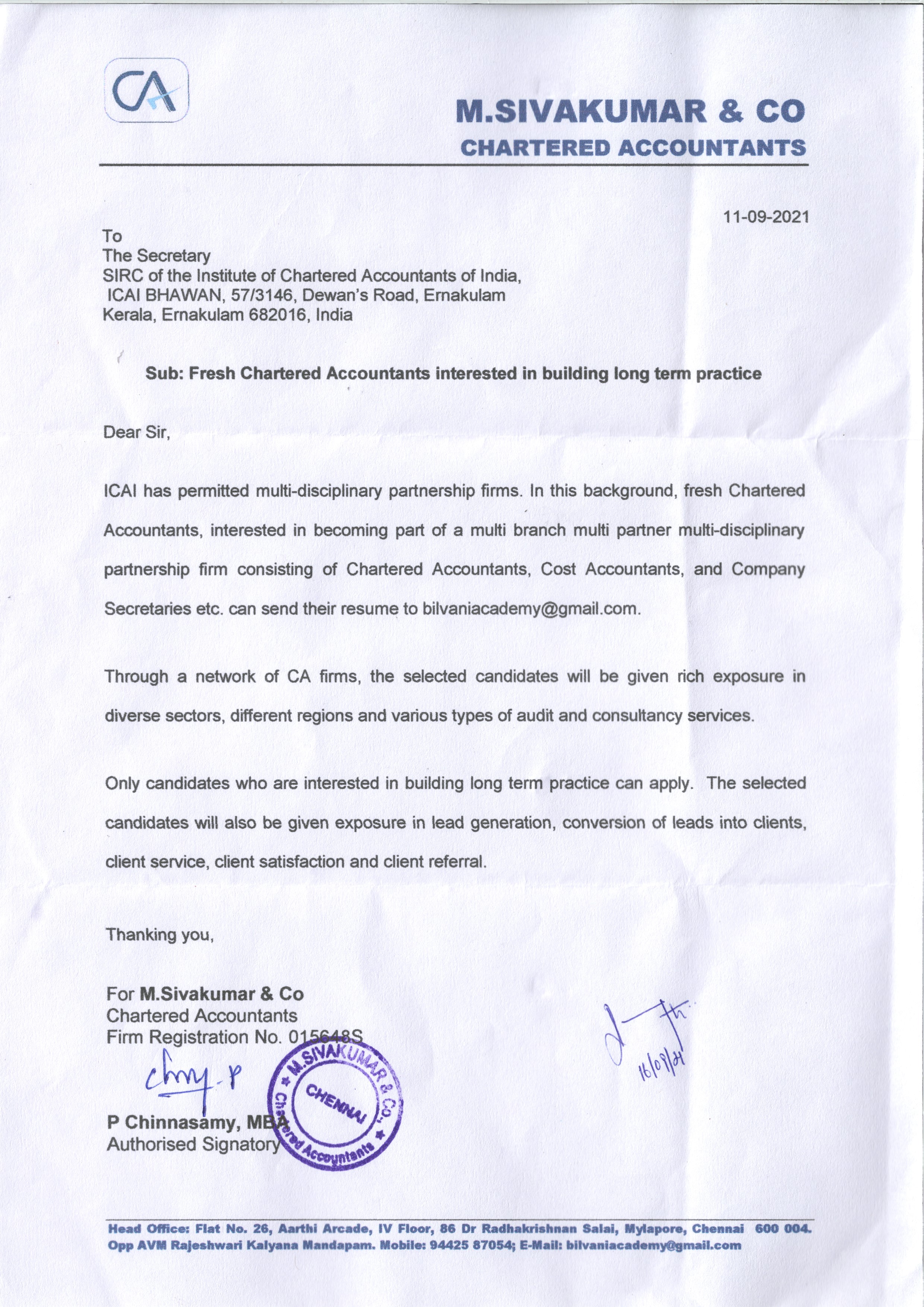Fresh Chartered Accountants Interested in building long term practice Company: Members 1004 Views Company/Firm: @ bilvaniacademy@gmail.com Download File Category Members Share this Post