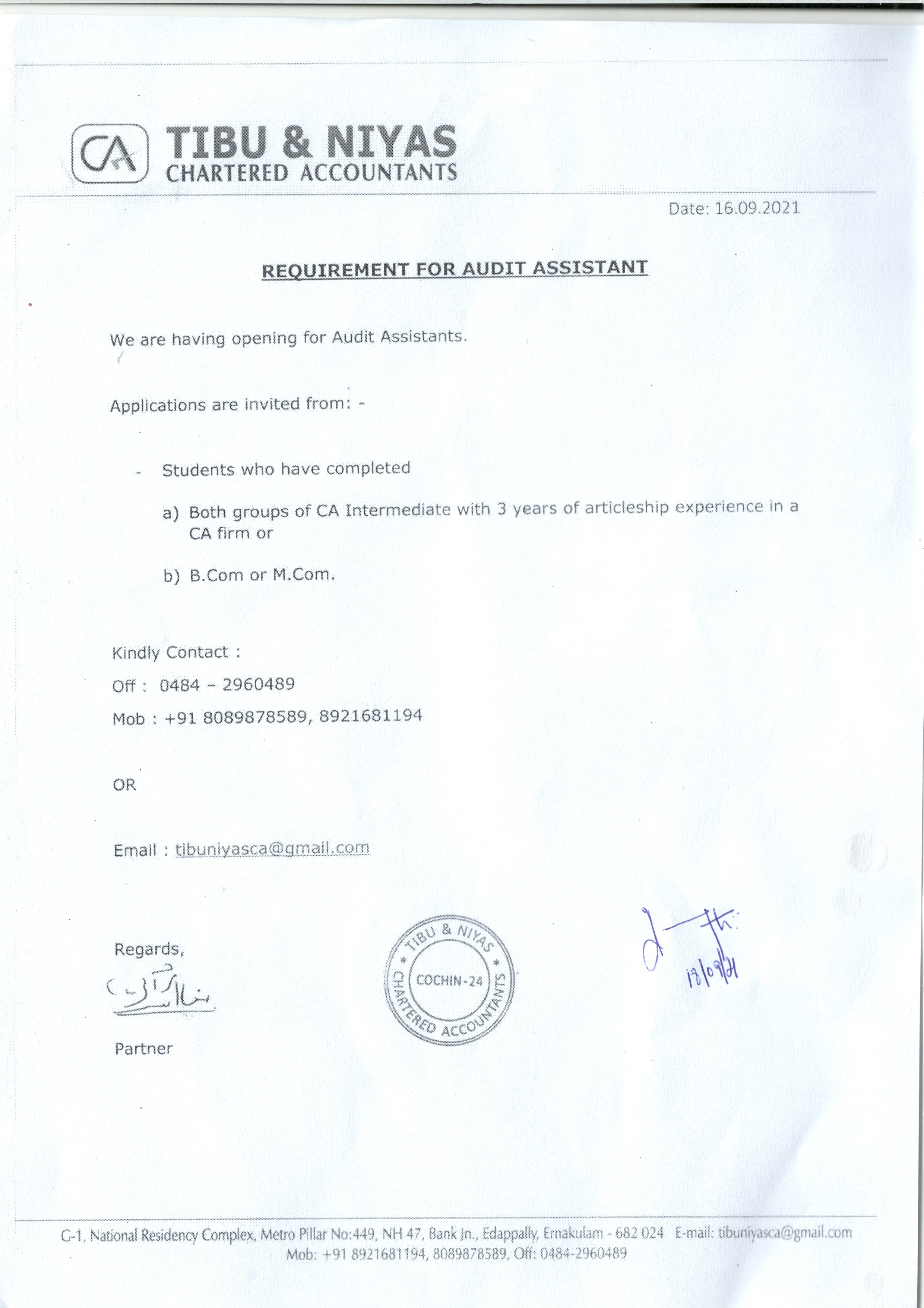 Requirement for Audit assistant Company: Students 1097 Views Company/Firm: @ tibuniyasca@gmail.com Download File Category Students Share this Post