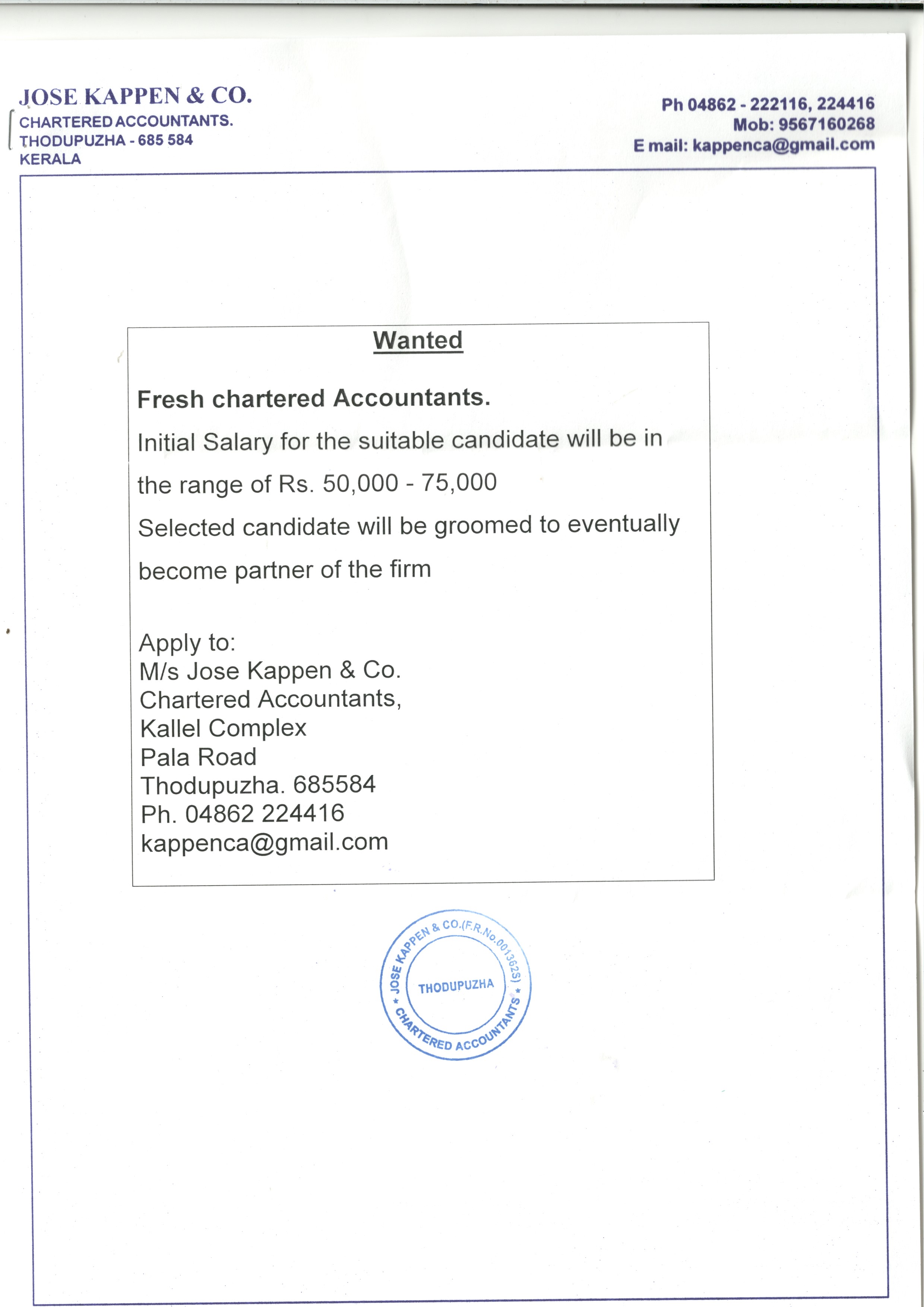 Required- Chartered Accountant Company: Jose Kappen & Co Members 986 Views Company/Firm: Jose Kappen & Co @ Download File Category Members Share this Post
