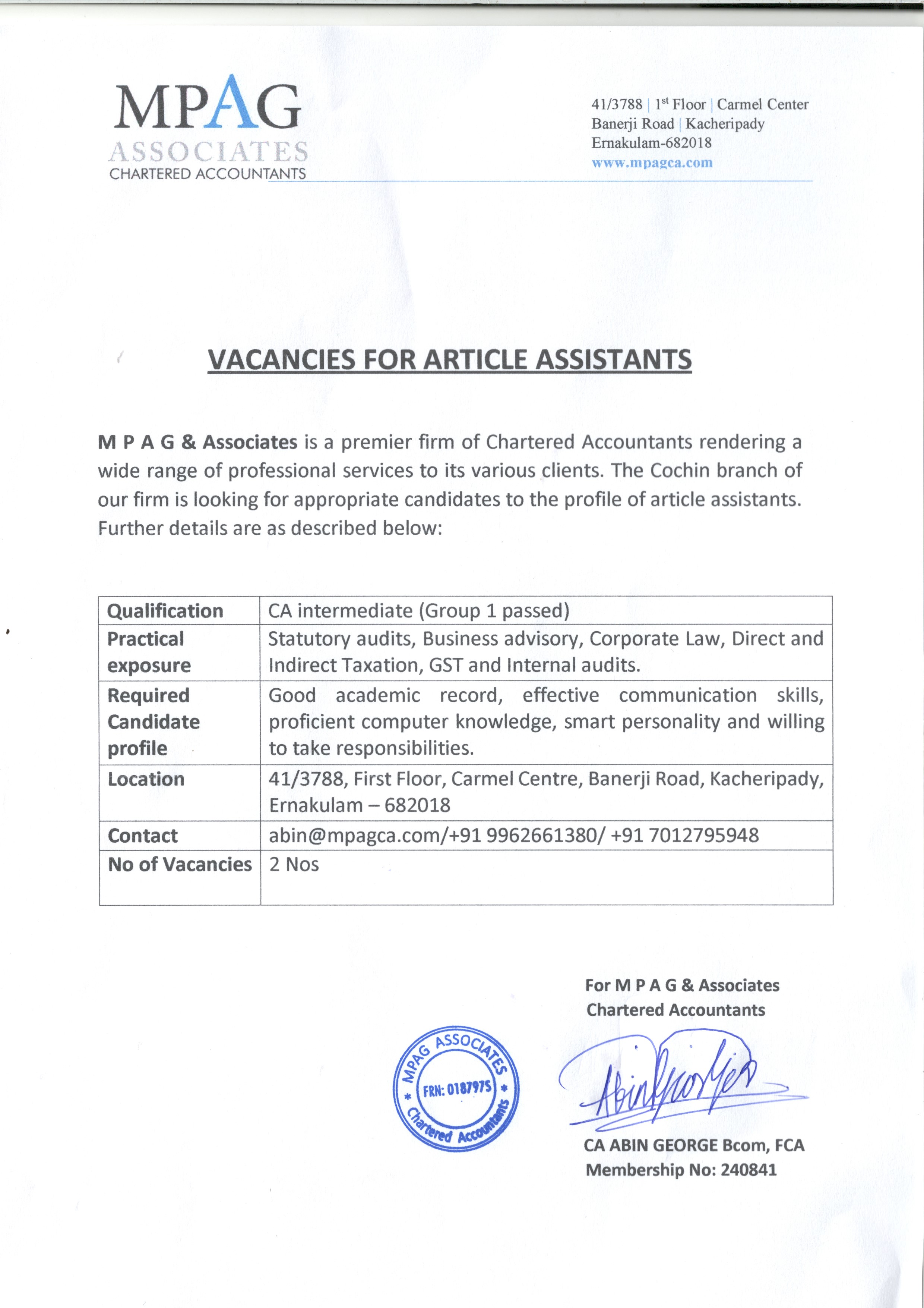 Vacancy for Articled Assistant Company: MPAG Associates Students 1432 Views Company/Firm: MPAG Associates @ Download File Category Students Share this Post