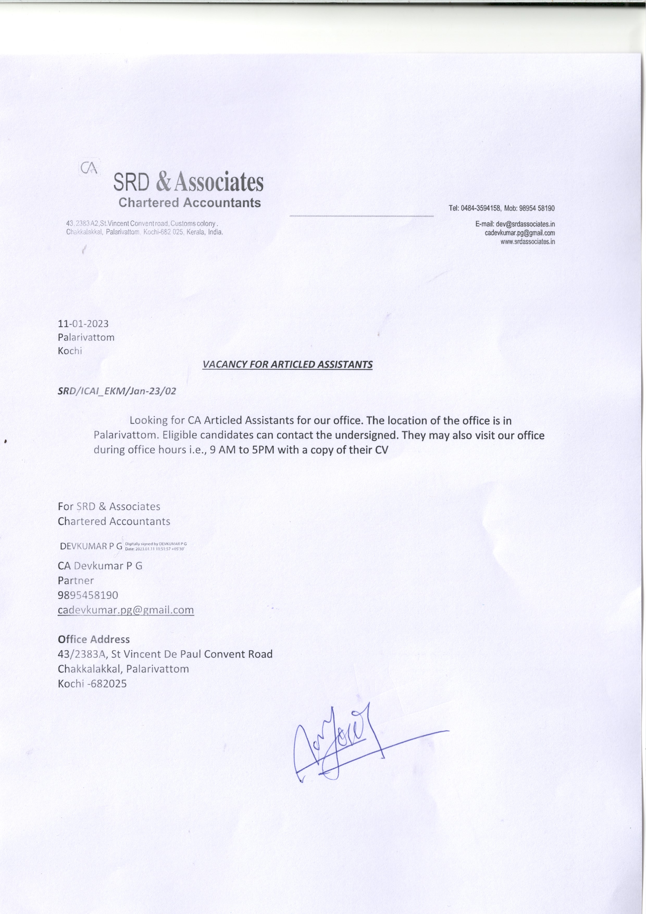 Vacancy for Articled Assistant Company: SRD Associates Students 840 Views Company/Firm: SRD Associates @ Download File Category Students Share this Post