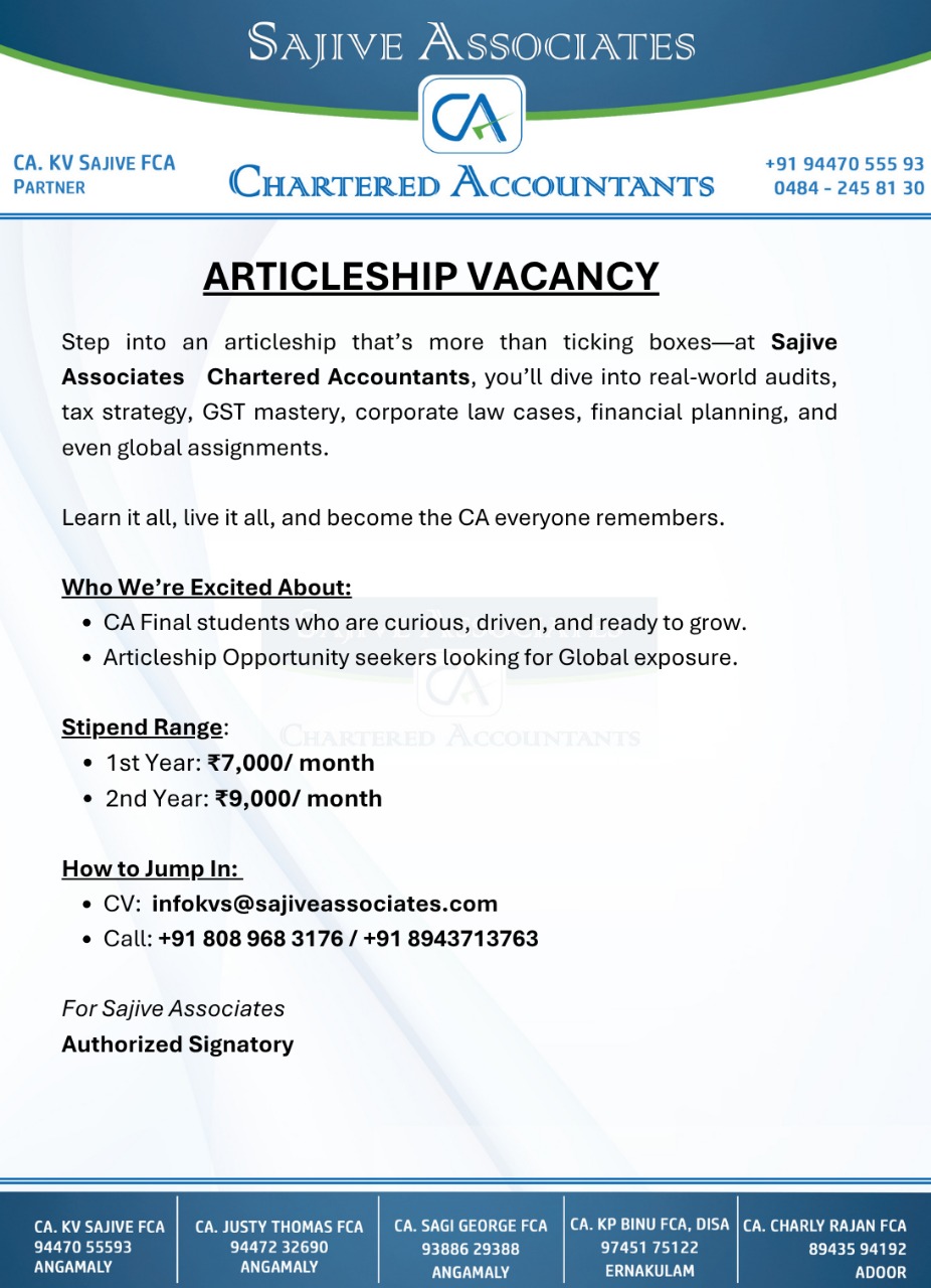 Vacancy for Articleship Company: Sajive Associates Students 130 Views Company/Firm: Sajive Associates @ Download File Category Students Share this Post