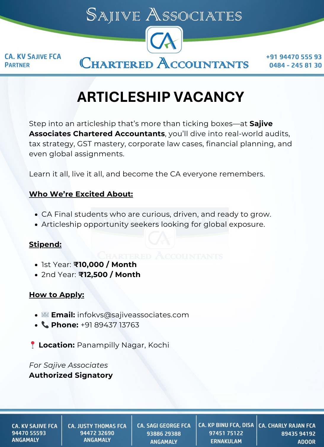 Vacancy for Articleship Company: Sajive Associates Students 54 Views Company/Firm: Sajive Associates @ Download File Category Students Share this Post